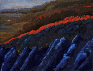Guy de Malherbe, Rivage (coulée de lave), 2024, huile sur toile, 27x35cm