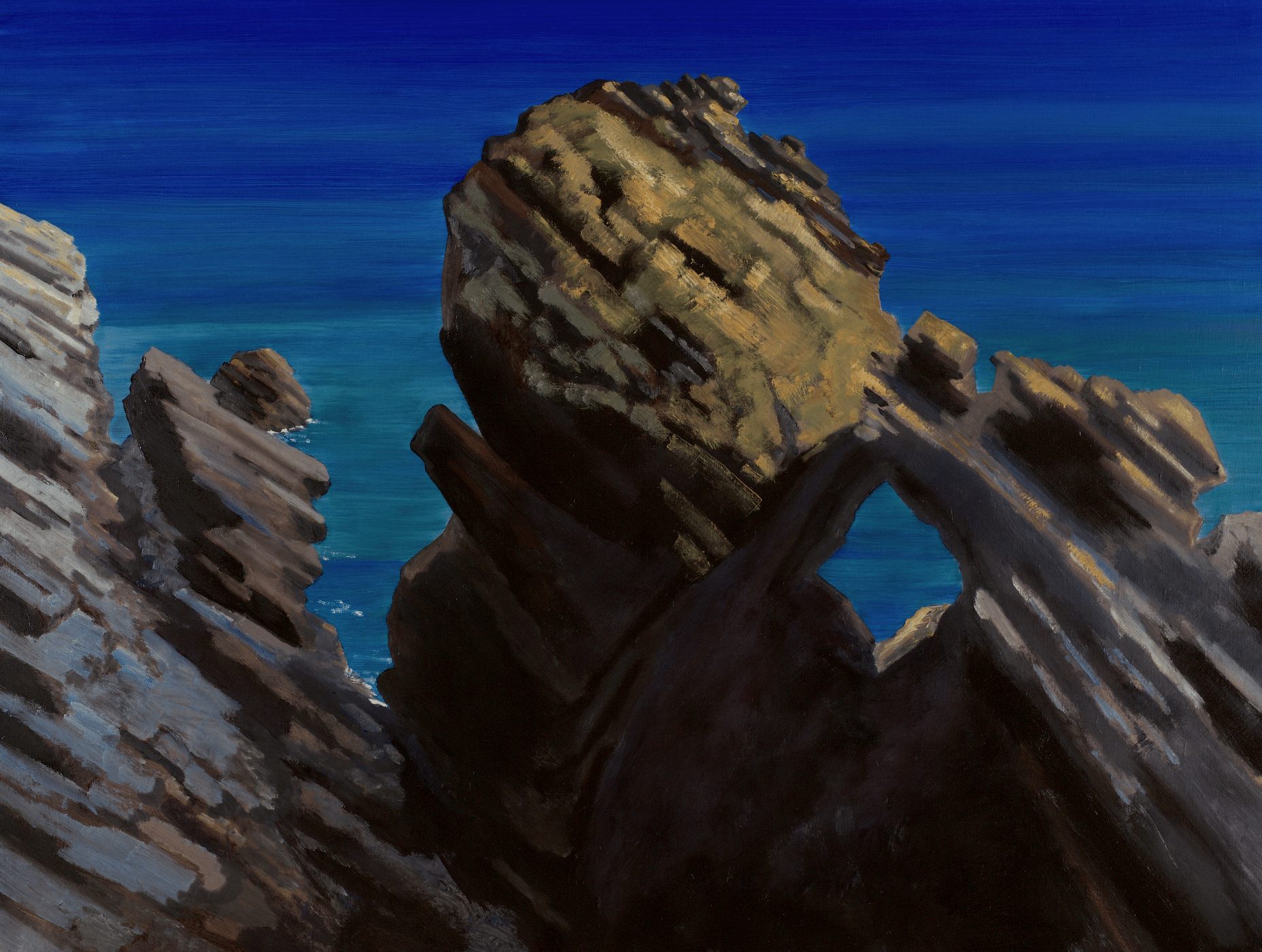 Guy de Malherbe, Roche percée (minorque), huile sur toile, h 90 x L 116 cm, 2023