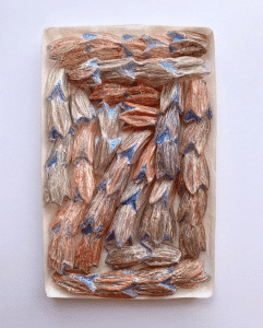Valérie Novello, Reliefs, Papier japonais, crayons de couleurs pastel, verre plomb avec socle, 31 x 48 cm, 2021